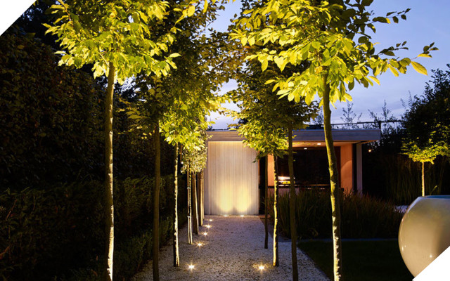 Grondspots zijn ook zeer geschikt voor het uitlichten en accentueren van bepaalde objecten in de tuin, zoals een boom of de gevel.